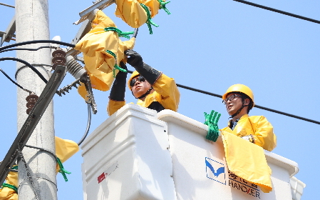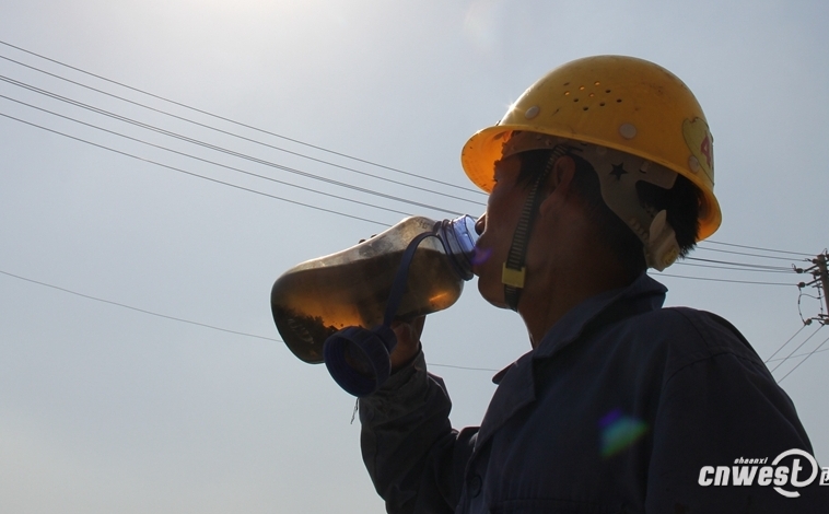 迎峰度夏期间,为了确保用户能够清凉度夏不断电,带电作业人员仍将与高温酷暑为伴,坚持战斗在保电最前线。绝缘服和绝缘手套都是绝缘不透风,在烈日的灼烤下,两名工作人员体内的温度不断攀升,王智和董磊两人全身都在不停地冒着汗,额头的汗水顺着脸庞不停滑落,每做一个动作都感到十分的费劲。